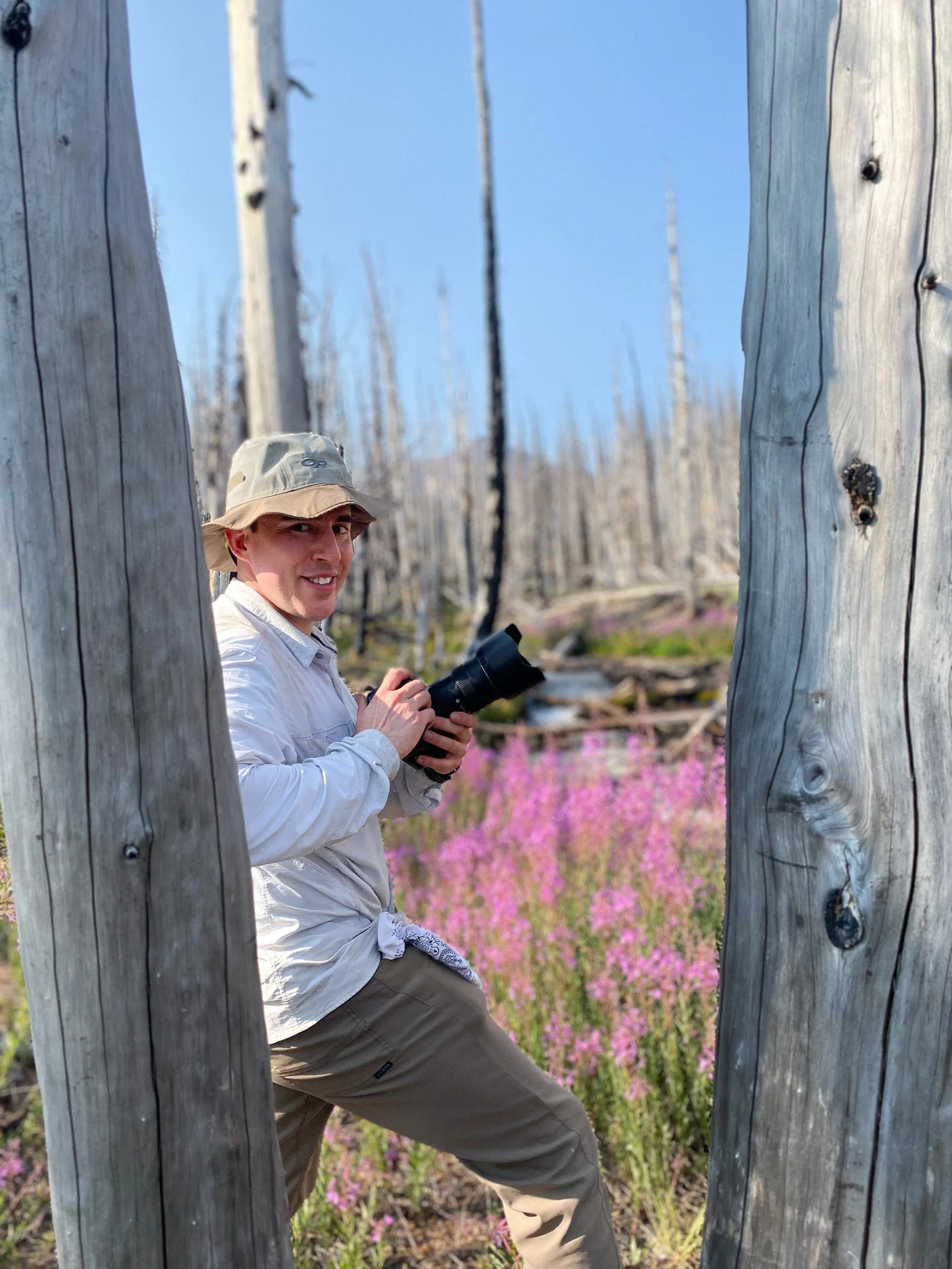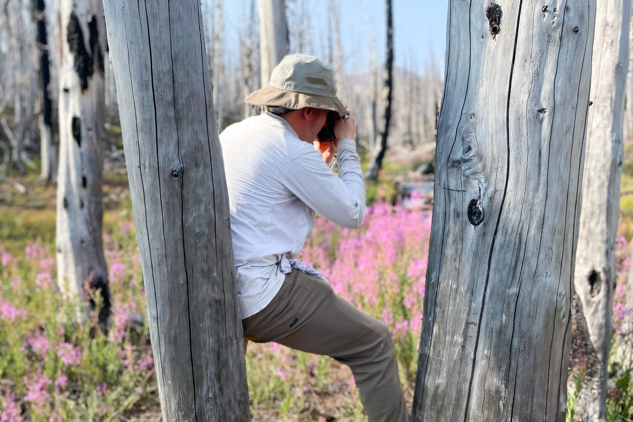 These streams also proved to be nurseries to fields of fireweed – pink blossoms that seem to defy the chaos and destruction around them. Seeing the fireweed amongst the white stalks of the burned stumps stopped me literally in my tracks. While I was hot to trot back to the car and nurse my blistering feet, I couldn’t help but come to a stop and pull out my DSLR to photograph this charred oasis.